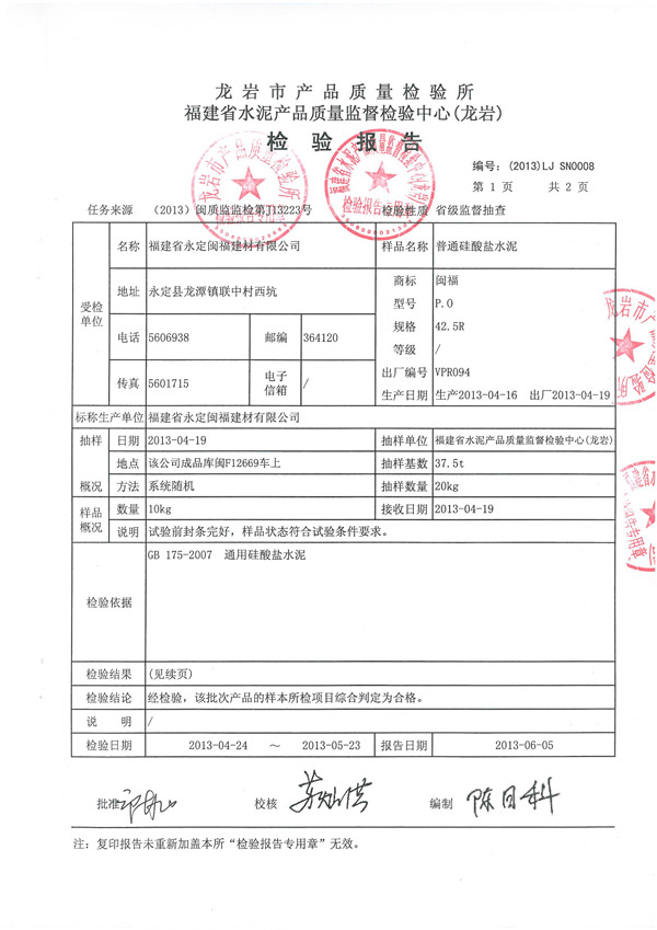 2013年6月5日產(chǎn)品質(zhì)量檢測(cè)報(bào)告