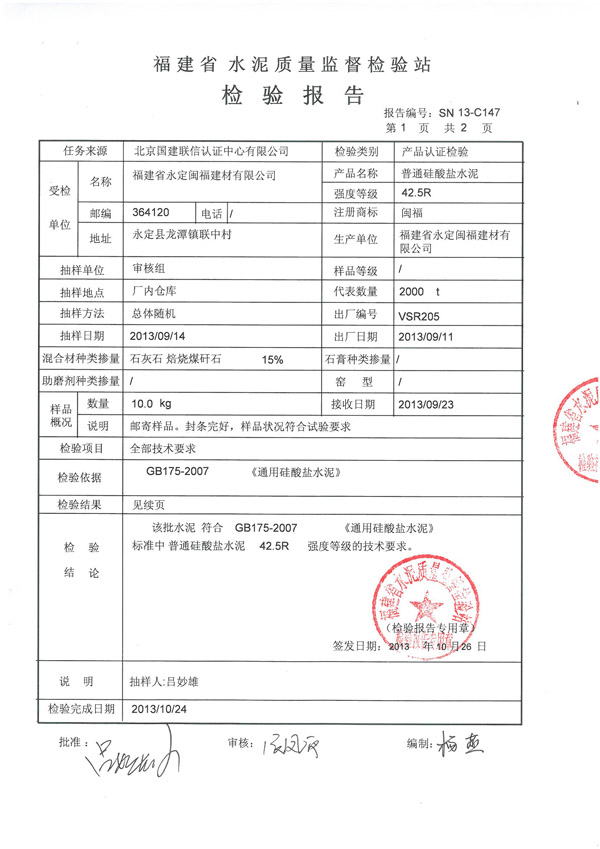2013年11月13日產(chǎn)品質(zhì)量檢測報告