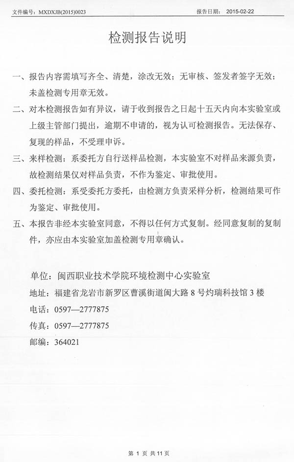 2015年2月環(huán)境檢測(cè)報(bào)告