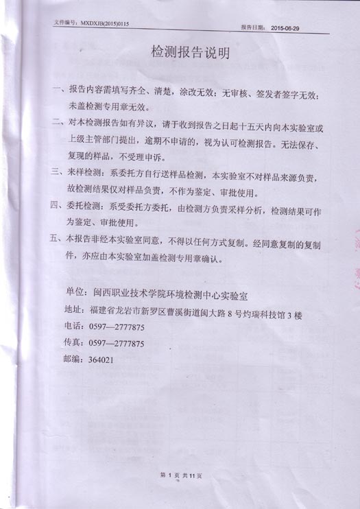 2015年6月環(huán)境檢測(cè)報(bào)告